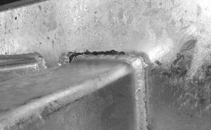 Welds are often the first site of failure and can occur for a number of reasons, including poor welding procedures, operational overload, cyclic fatigue, or operating in corrosive environments. Cracked paint at welds showing signs of rust are often the first sign of an underlying cracked weld.